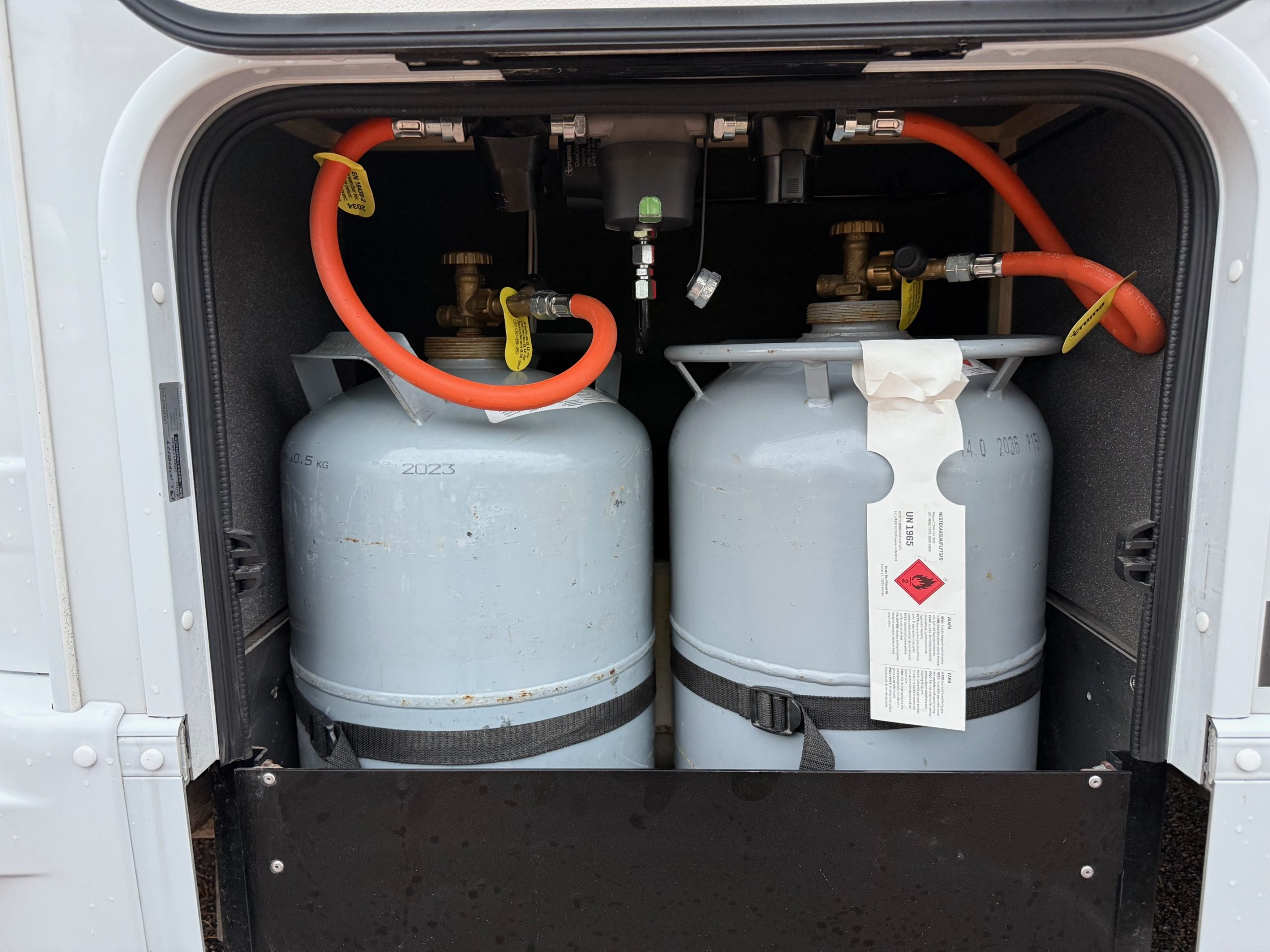 Standard equipment includes two gas bottles and a safety shut-off system that allows gas use while driving. You’ll be ready for any kind of weather.