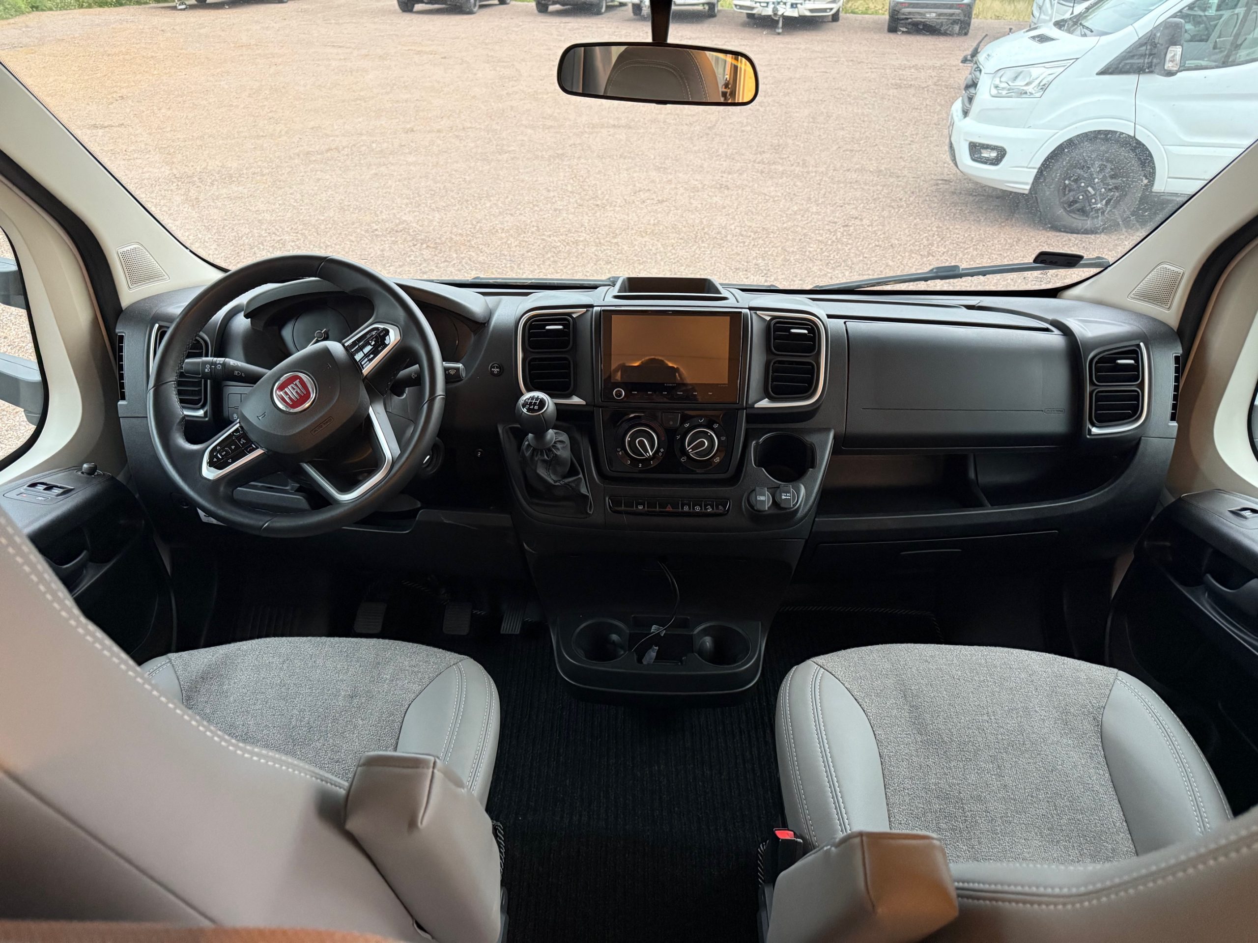 Driver comfort is enhanced by cruise control, a six-speed gearbox, air conditioning, and a reversing camera – all built on a reliable Fiat Ducato chassis for a smooth and safe drive. The large dashboard screen with Google Play and Apple AirPlay makes navigation and reversing effortless.