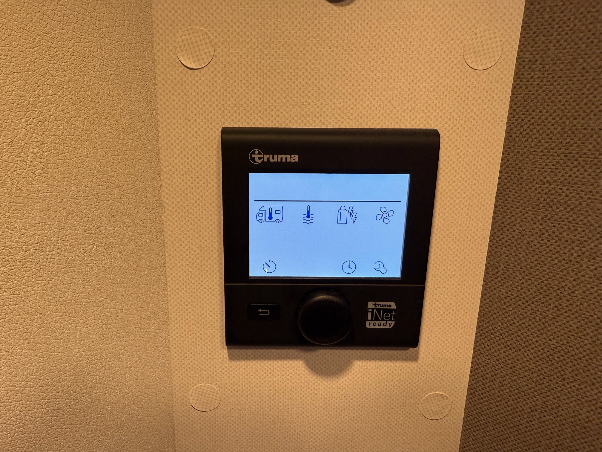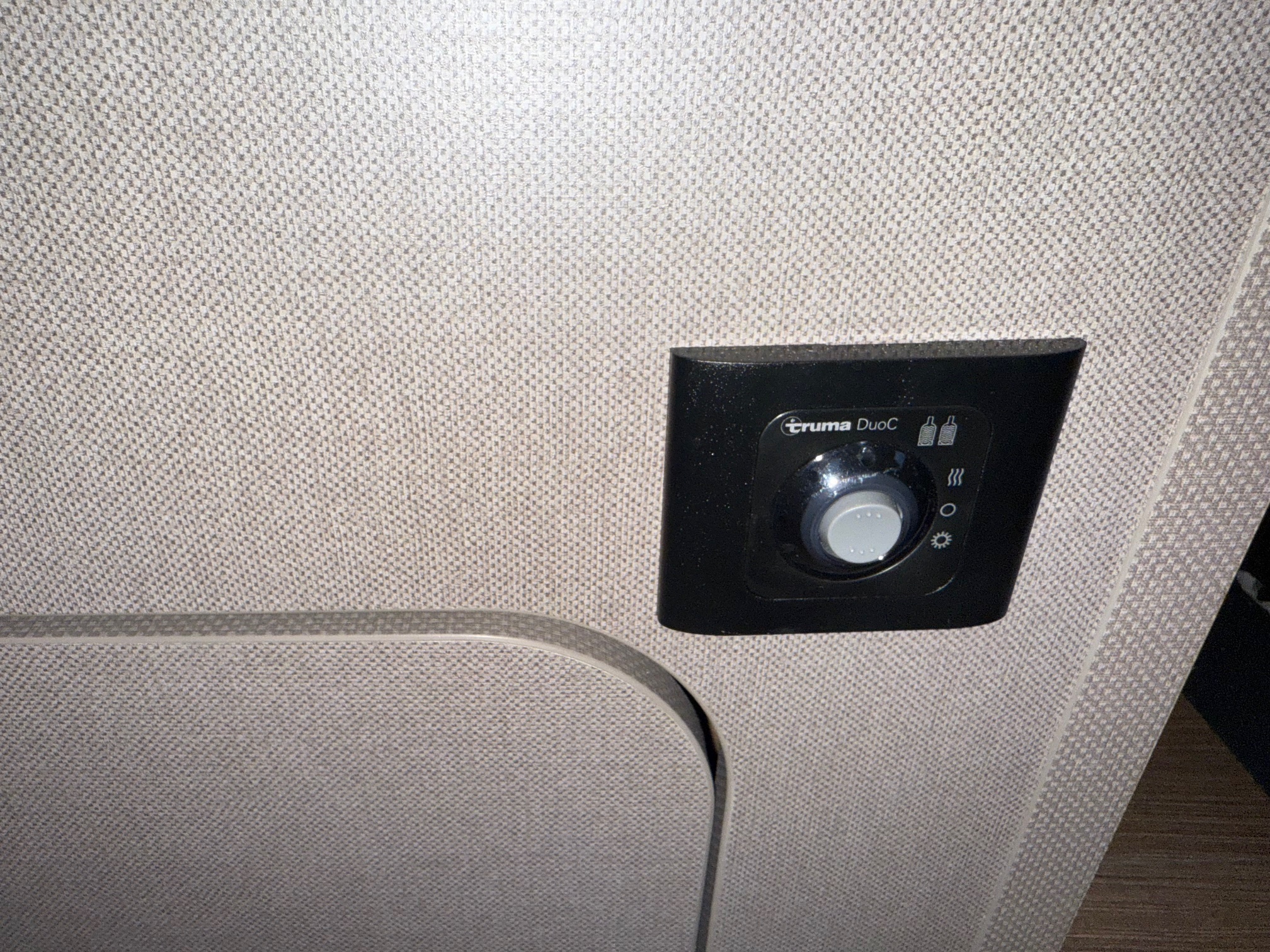 The Truma 6 air heating system keeps the living area and water warm, while electric floor heating adds extra comfort. The gas system includes an automatic switch-over and a heated gas compartment, ensuring a steady gas supply even in sub-zero conditions.